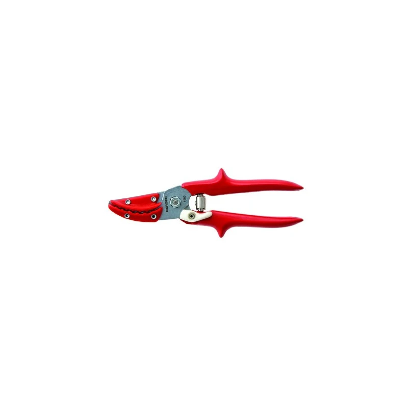 Sécateur spécialement étudié pour la récolte des roses, avec joues d'appui pour tenir les tiges des roses sans se blesser, poignées adaptées aux petites mains. Longueur : 190mm Poids : 170gr Fabriqué en Allemagne par Julius BERGER.