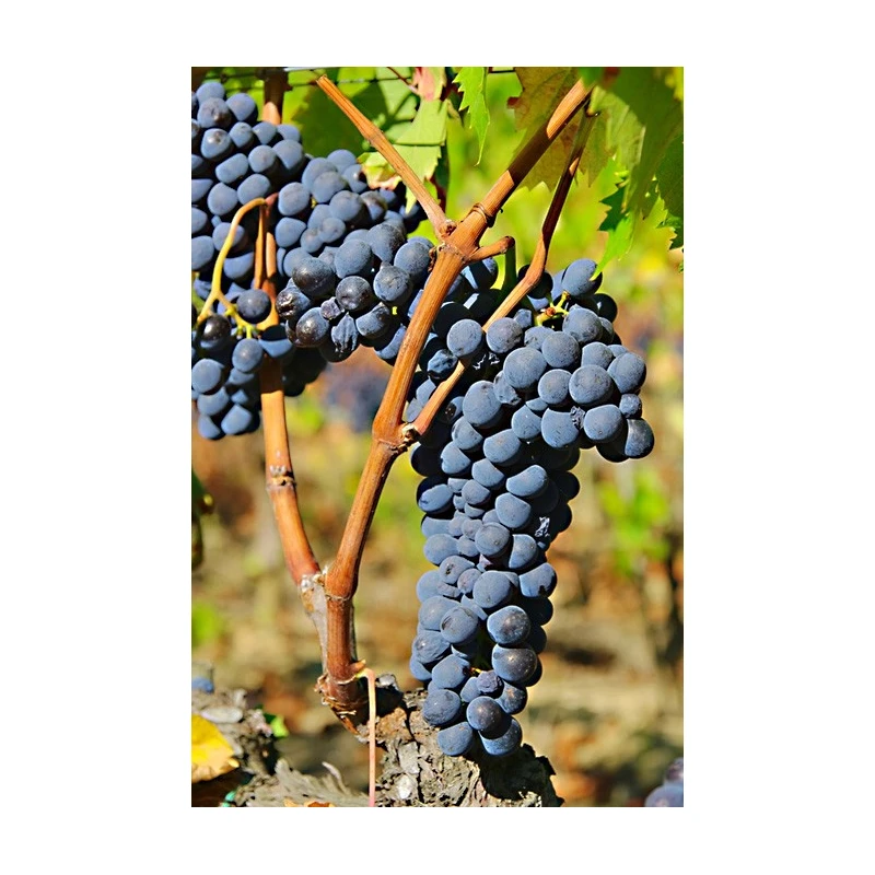Le raisin noir de table 'Muscat de Hambourg" que nous vous proposons en lot de 3 pots, est un cépage de tradition reconnu pour ses qualités gustatives, sa chair ferme et sucrée, son joli fruit noir pruiné et son acclimatation dans pratiquement toutes les régions de France. On consomme le raisin noir"Muscat de Hambourg" en fruits frais, en salade de fruits, avec des cailles, en clafoutis ou en tarte. Le raisin convient bien aux plats sucrés-salés. La vigne est cultivée depuis des millénaires dans le bassin méditerranéen et au proche-Orient. Cet arbuste sarmenteux s'adapte à pratiquement tous les climats, pratiquement jusqu'au nord de l'Allemagne et aime les sols drainants.. La vigne "Muscat de Hambourg" est à palisser sur des fils tendus entre deux poteaux, dans un vieil arbre mort ou contre un mur de votre maison exposé au sud si vous êtes au nord de la Loire. Nous conseillons la plantation du cépage "Muscat de Hambourg" au sud de la Loire pour avoir une production régulière. Maturité en octobre. Plant greffé en tête.